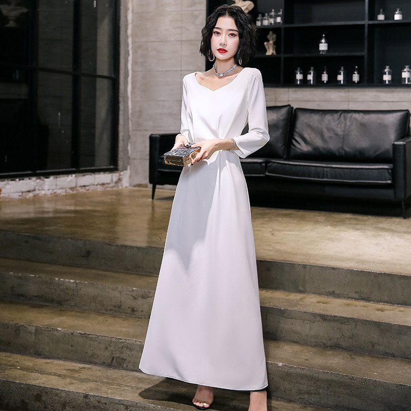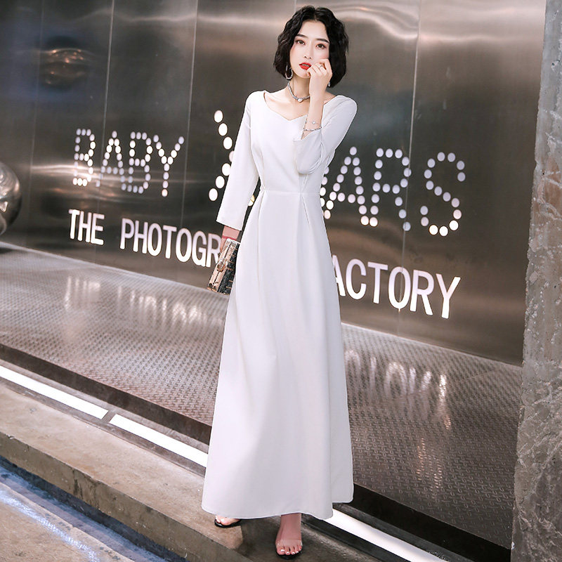 Evening dress Western dress women's summer summer white long version Light luxury niche high-end temperament Long sleeve banquet can usually be worn