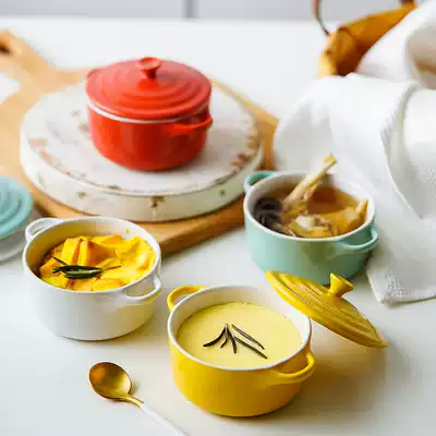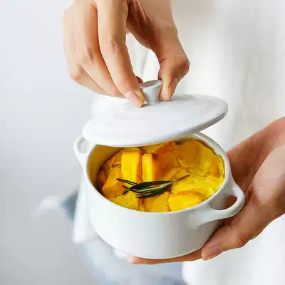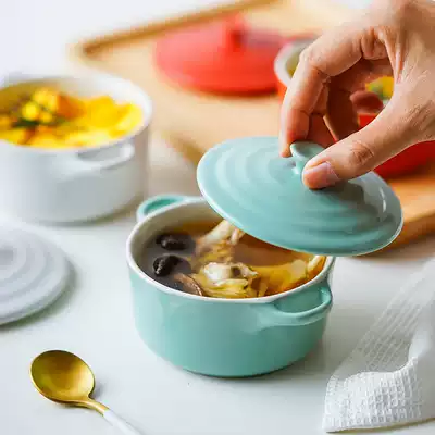 Ceramic Japanese Steamed Egg Bowl Baby Steamed Egg Soup Cake Special Rice Bowl Household Small Double Ear Stew Cup with Lid