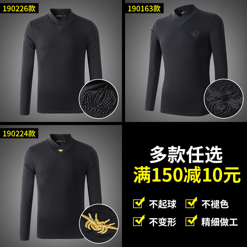 Modal 2021 new men's base shirt middle collar long sleeve T-shirt spring and autumn semi high collar spring clothes men's tide