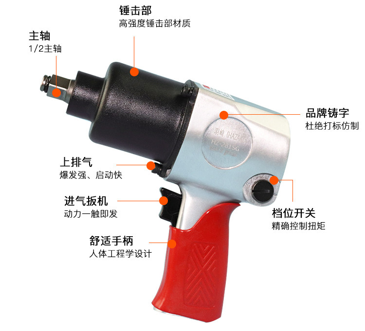 German Import Hanzaki HZ-281SG Pneumatic wrench 1 2 Industry Level Large torque small pneumatic wrench Steam repair small pneumatic wrench