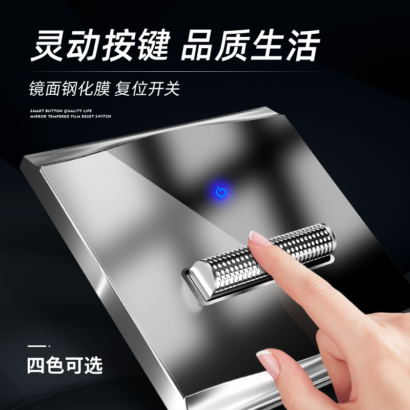 Black jog switch socket panel Mirror glass type 86 single and double cut wall jog switch panel Household
