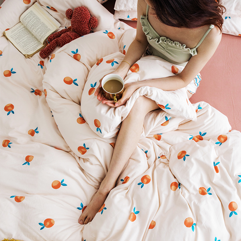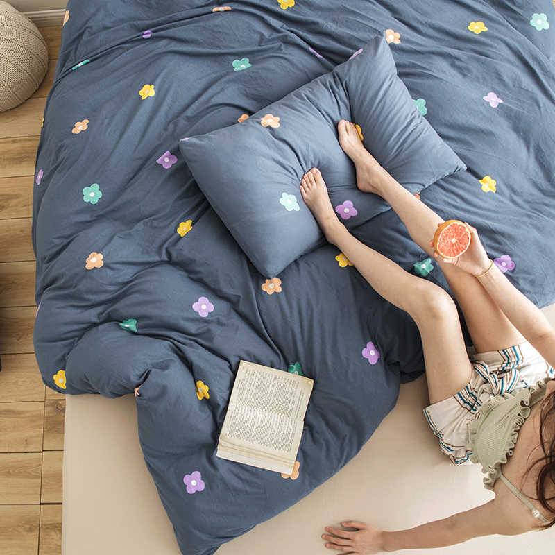 Elegant Wind Small Flowers Knit Geranium cotton four sets full cotton nude sleep Quilt Cover Bed Linen Pure Cotton Bed Goods Three Sets