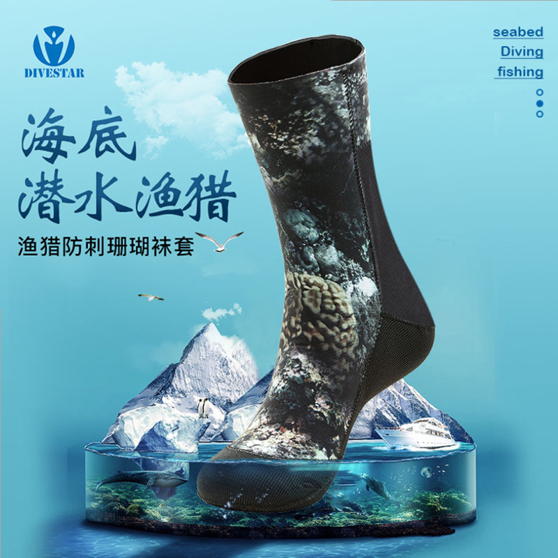 Professional diving socks 3 5mm thickened camouflay winter swimming socks cover photoskin cold-proof and warm male and female beach socks non-slip