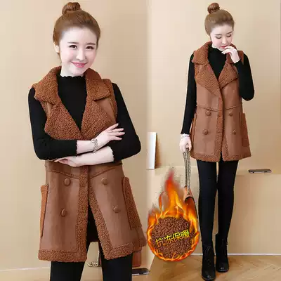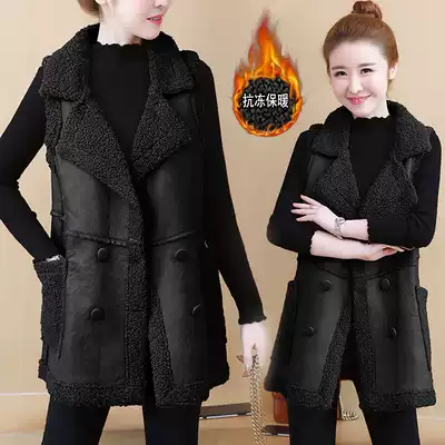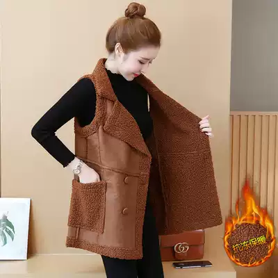 Large size lamb cashmere vest women autumn and winter Korean version of suit collar sleeveless Joker plus velvet padded medium and long version of waistcoat coat