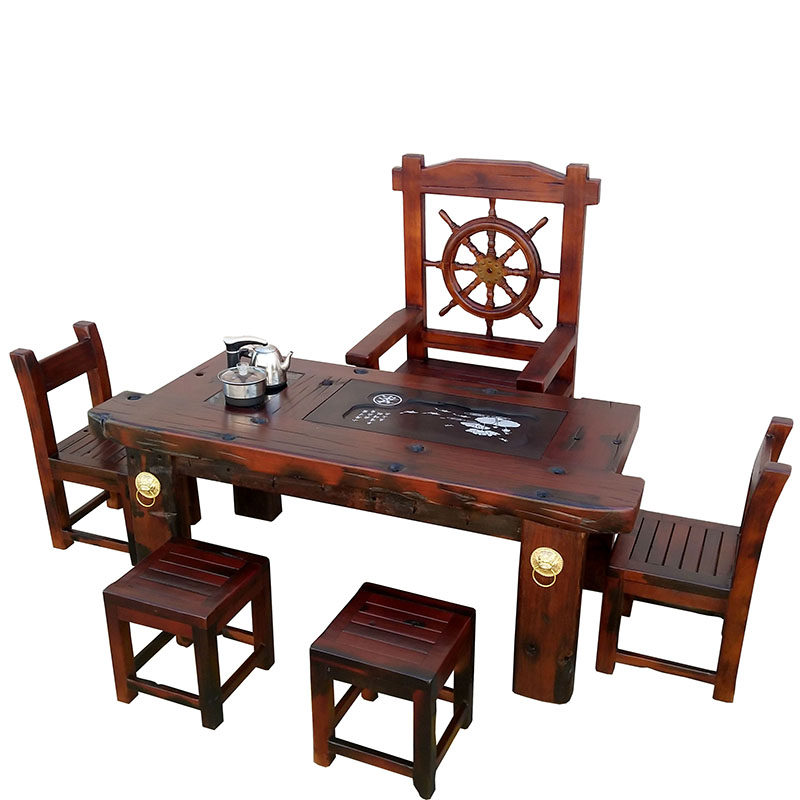 Old boat wood tea table and chair combination new Chinese style Zen solid wood tea table balcony simple modern kung fu tea table ancient furniture