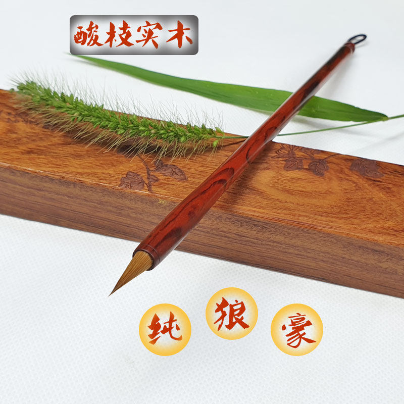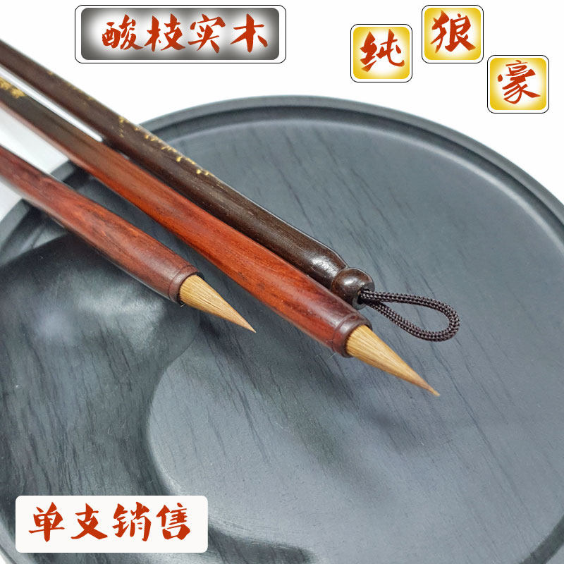 Hairpin flower small Kai brush Pure wolf brush Mahogany acid branch wood Northeast Tail Wolf brush Medium and small Kai brush Wenfang Sibao Pen ink Paper inkstone supplies Copy Sutra Regular script line book Professional hook line calligraphy High-end brush