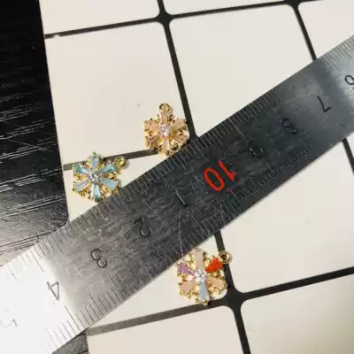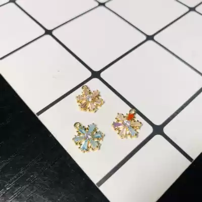 Domestic cooperation fresh and cute pink blue purple zircon shiny snowflakes autumn and winter 14K gold pendant diy accessories