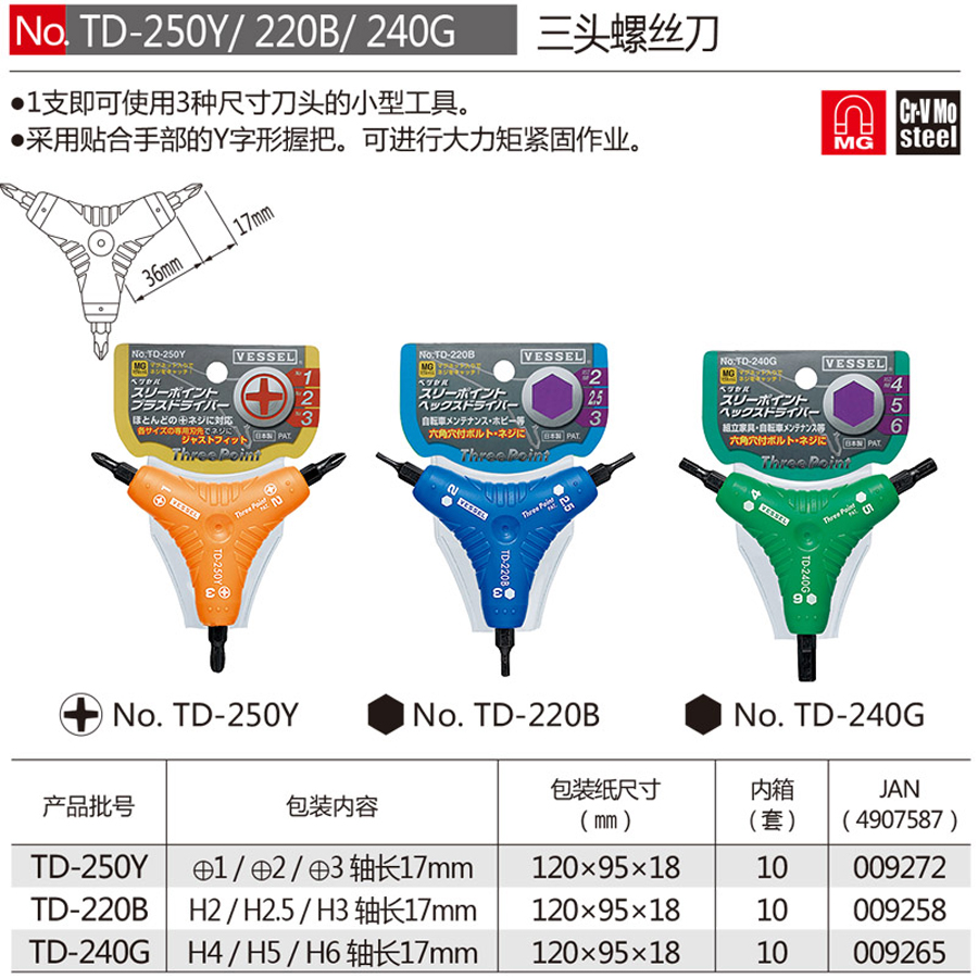 TD-250Y TD-250Y cross TD-220B TD-220B hexagon TD-240G inner hexagon TD-210 cross I