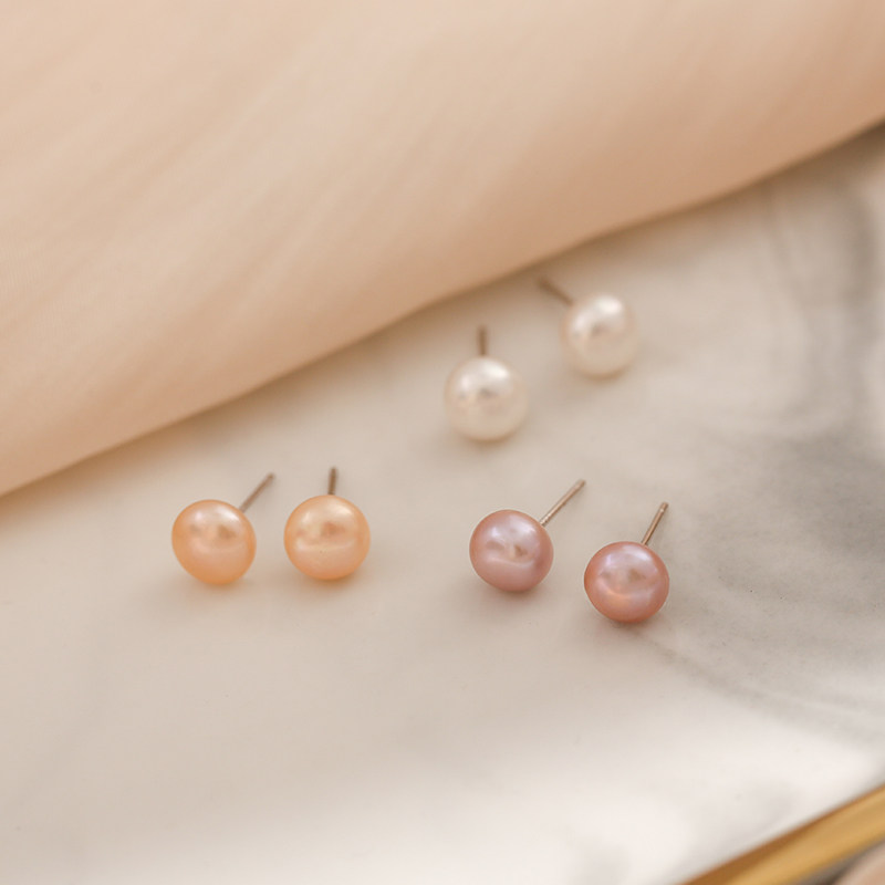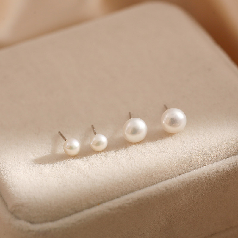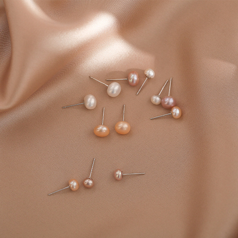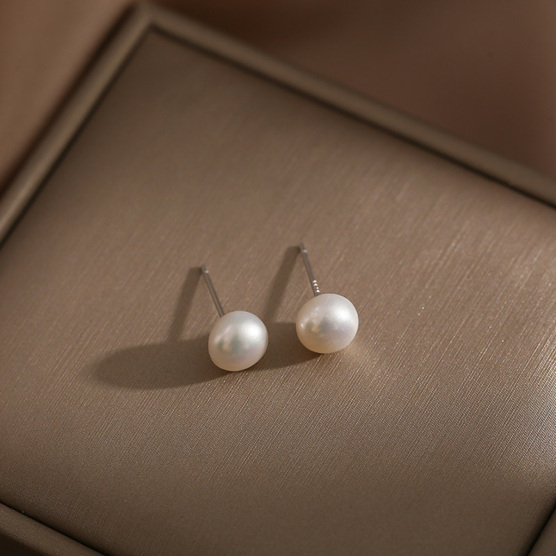 Natural Freshwater Pearl Earrings Female Temperament Korea Individuality Minimalist Ear Accessories 925 pure silver small anti-allergy earrings