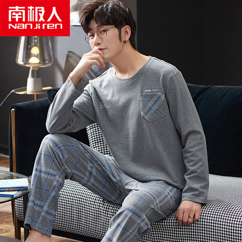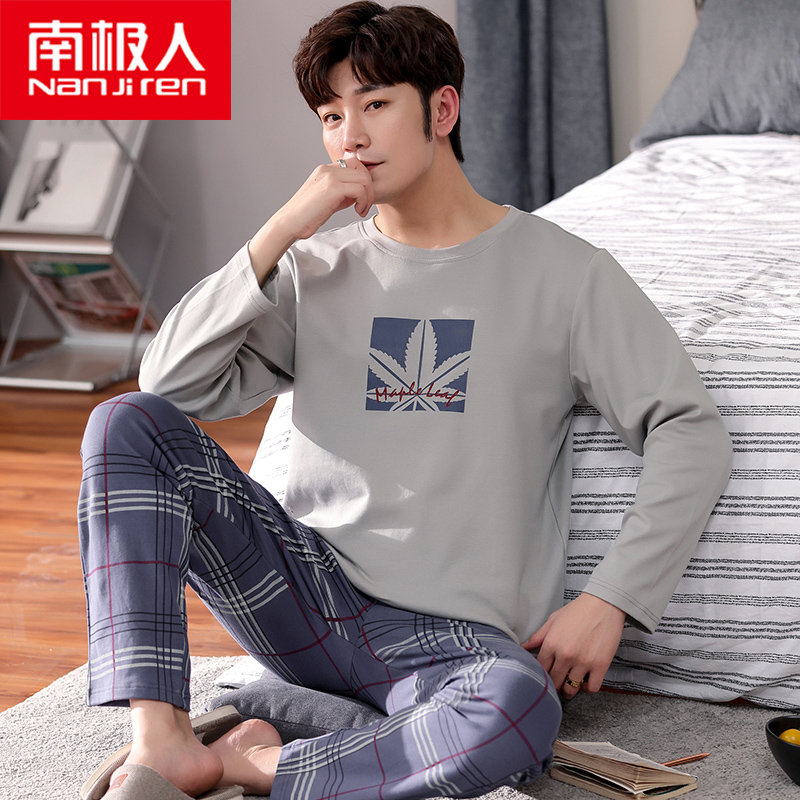 South Pole men's men's sleepwear long sleeves pure cotton spring and autumn season cartoon teenagers' students suit autumn and winter large size family clothes
