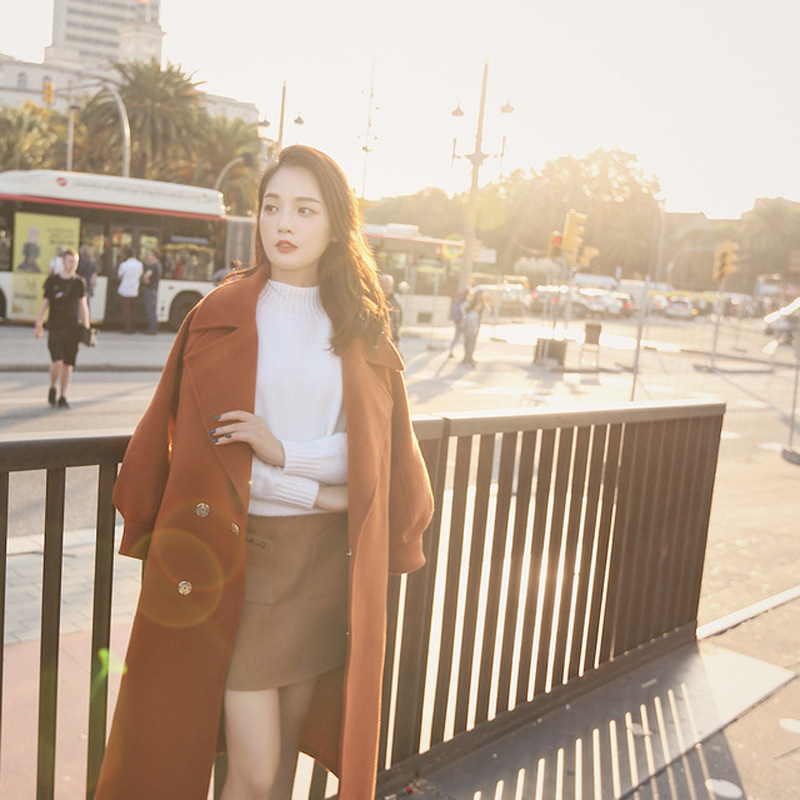 Medium long version over knee 100 hitch, great coat female autumn and winter Korean version loose with small fragrance and small sub-coat thickened