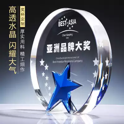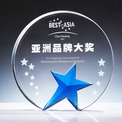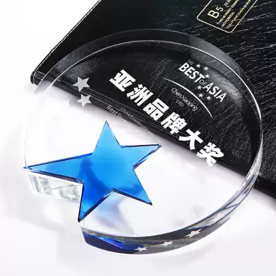 Creative round five-pointed star crystal trophy customized free lettering Medal honor commemorative agent authorized license plate custom