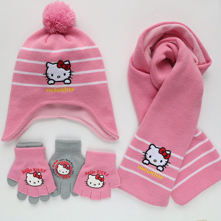 Small size gloves 3 pieces set 2-6 years old large size gloves 3 pieces set 6-10 years old separate hat