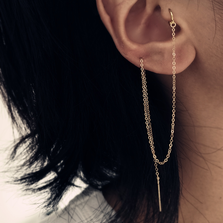 Multi-ear pierced ear jewelry earrings 925 sterling silver a double earring long version earrings long version temperament Korea