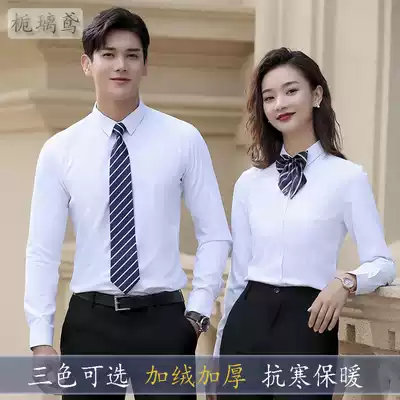 Professional suit men's warm white shirt formal dress men's and women's same overalls long-sleeved shirt autumn and winter plus velvet thickening
