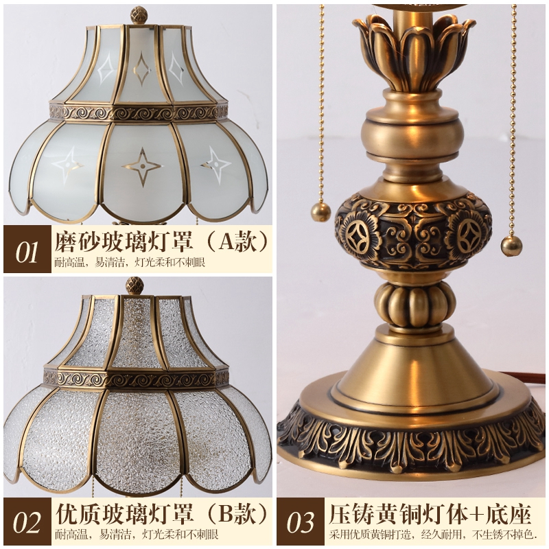 Eurostyle Table Light Bedroom Retro Full Copper Lavish Wedding Cozy Romantic Light Lavish Book Room Creative small bed headlights