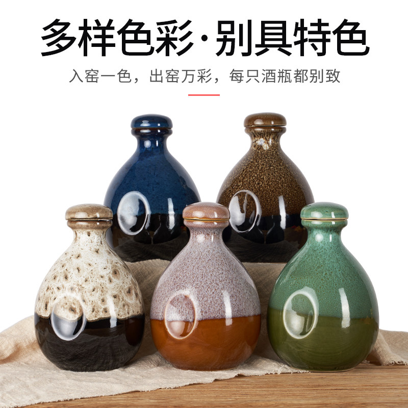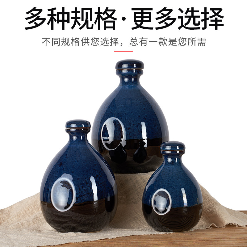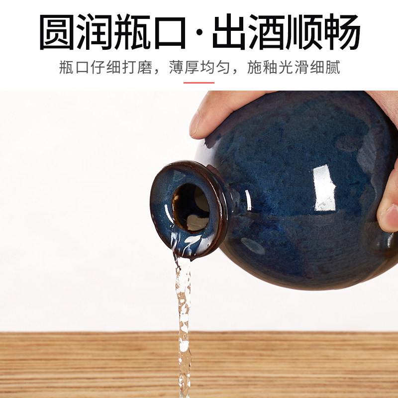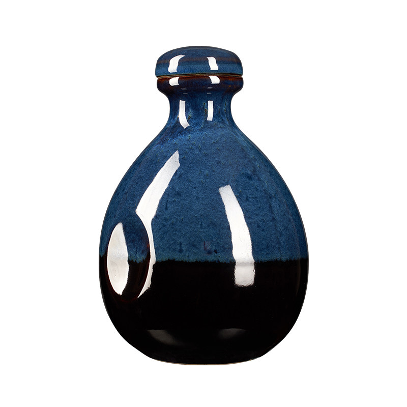 1 catties empty wine bottle with black base blue glaze 2 catties empty wine bottle with black base blue glaze 3 catties empty wine bottle With red cloth yellow tassel black background blue