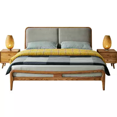 Nature Nordic Ash Modern simple solid wood 04 bed 1 8m Double bed Master bedroom Wedding bed 1 5m