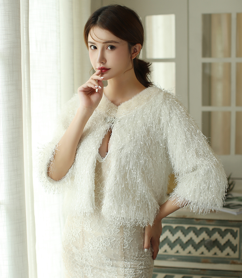 Fur bridal wedding dress shawl female long-sleeved 2021 autumn and winter wedding dress coat thickened warm cheongsam outside