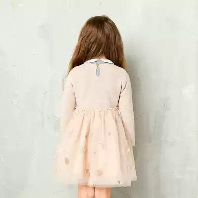 Mitti children's clothing winter new knitted mesh dress cute fashion lady embroidered wool skirt