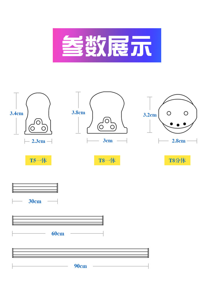 Pink T5 integrated lamp (with bracket) pink T8 integrated lamp (with bracket) pink T8 split lamp (without bracket)