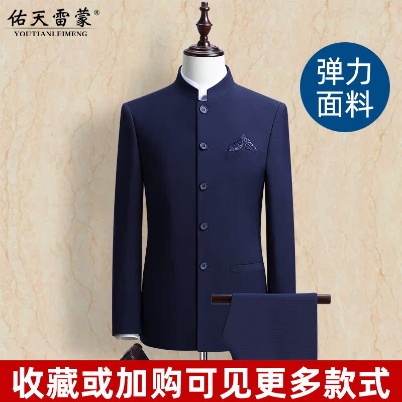 Zhongshan Clothing Suit Men's Youth Sashimi China Wind China Stand-up Elastic West Suit Chinese Groom Wedding Gown