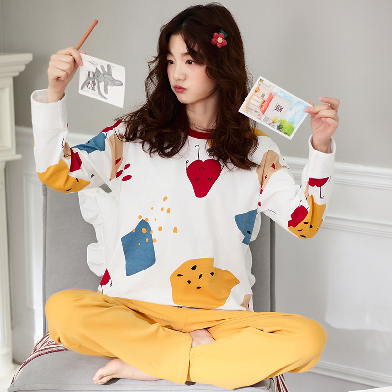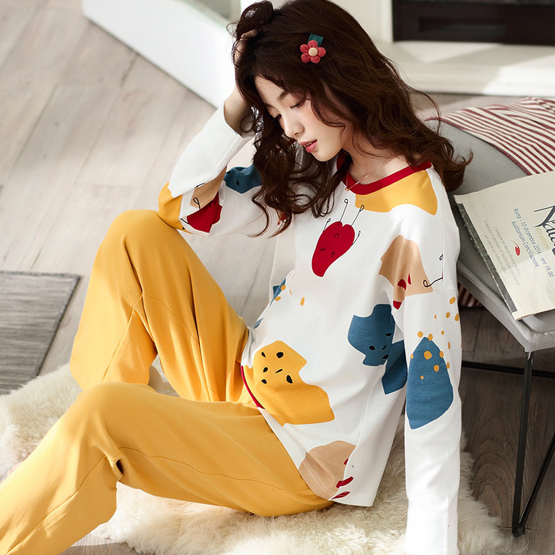 Women's cotton autumn pajamas girlfriends home clothes 100% cotton youth students leisure loose home clothes suit winter