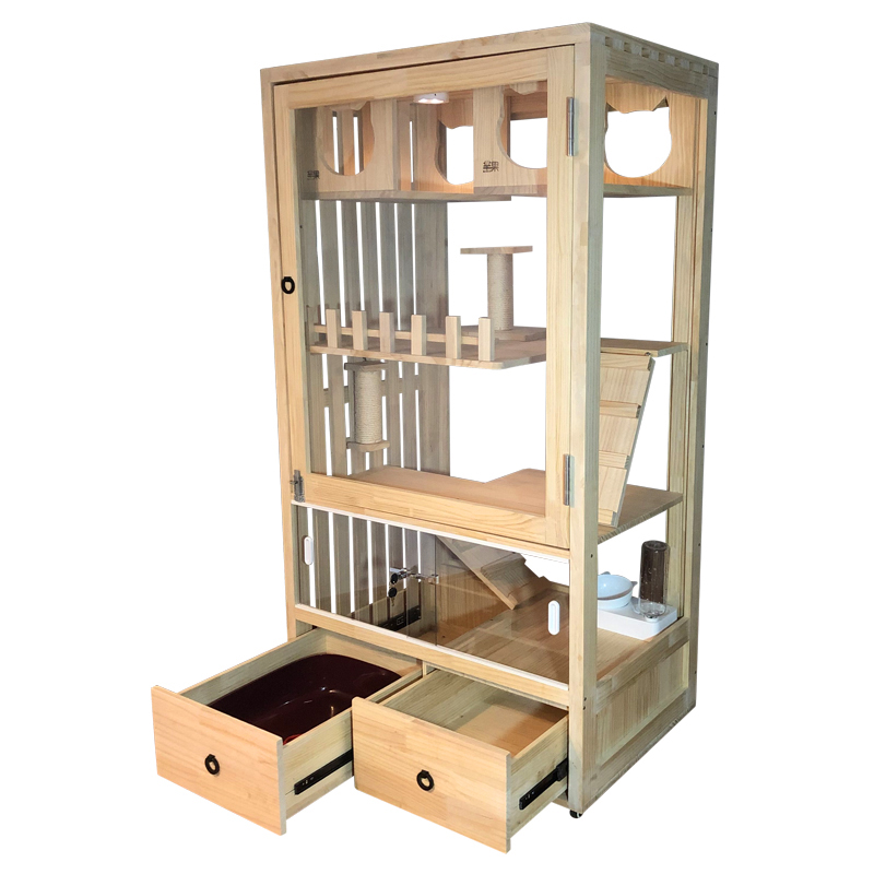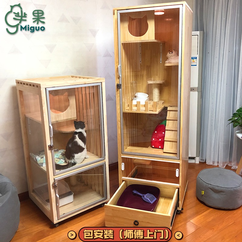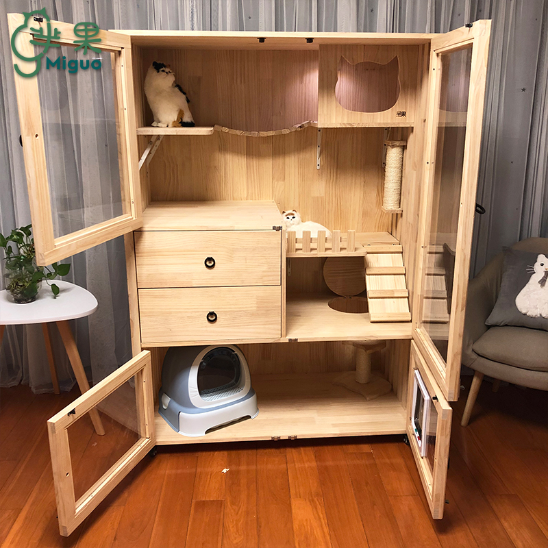 Real wooden cat cage cat Villa kitten apartment home oversized indoor cat house day lace toilet integrated drawer