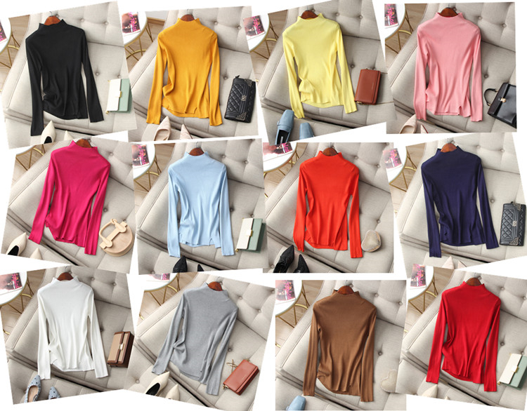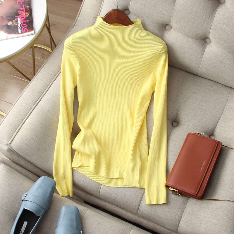 Hand N pieces ~ Juxian thin Simple solid color half high collar long sleeve stretch ribbed sweater slim bottoming shirt women