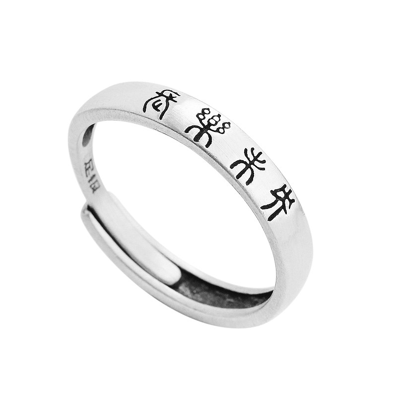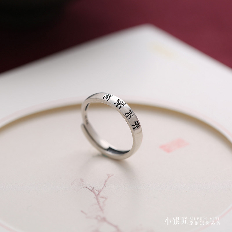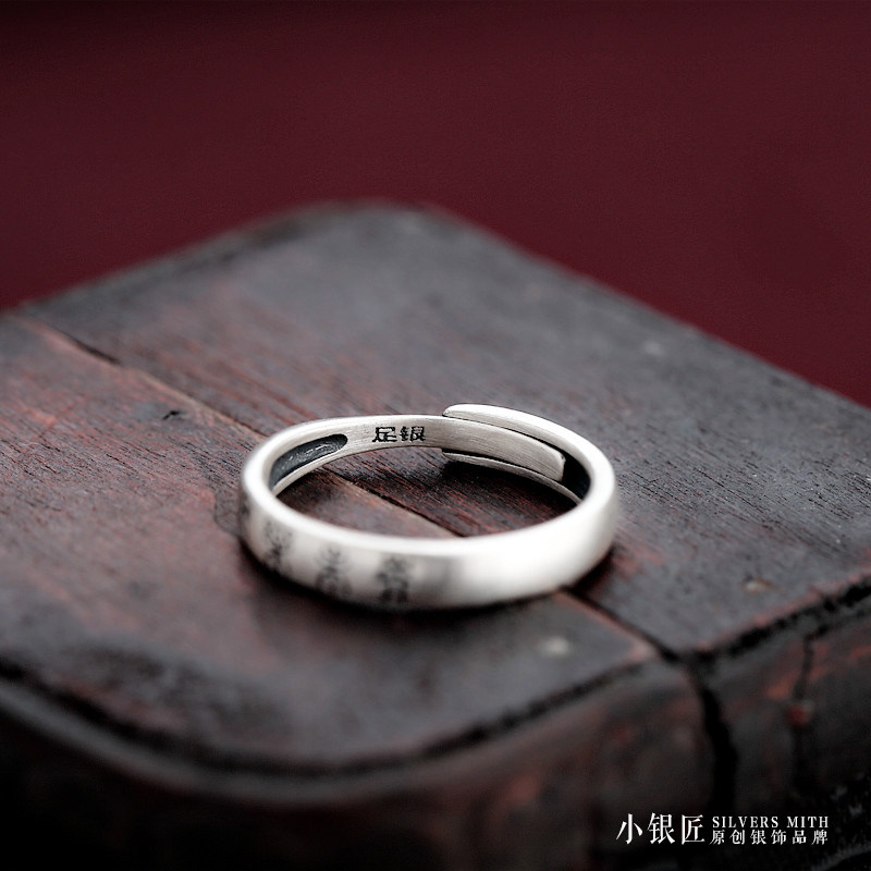 Original 990 foot silver opening ring < Long music without CCTV > Little seal retro ancient wind personality Art pure silver female ring