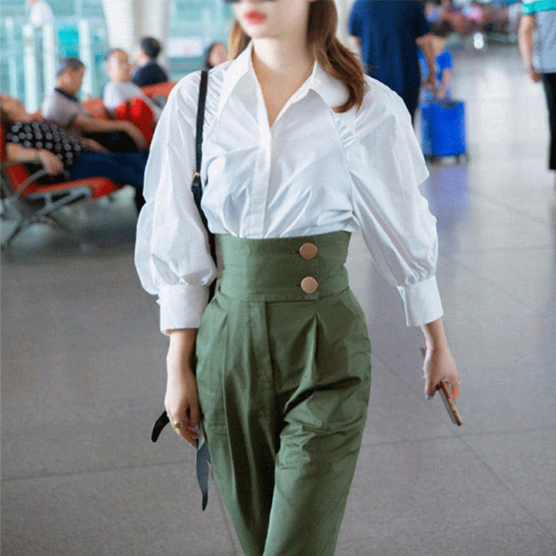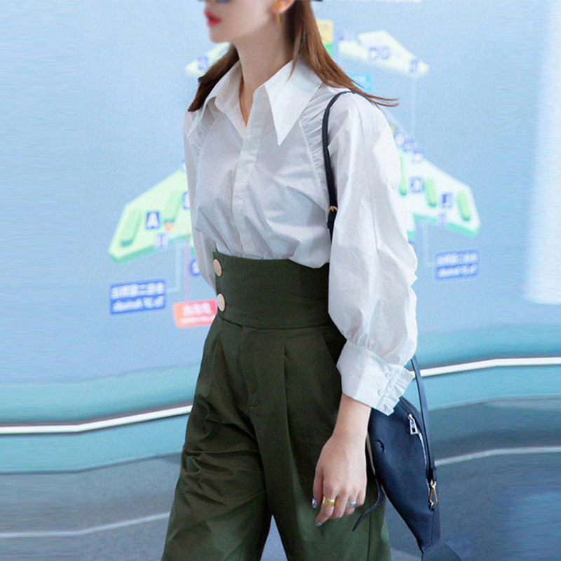 Shirt with the same style, Harlan, high waist, military uniform, trendy pants, small feet, female Hong Kong flavor, retro Yang Mi, spring and autumn, Qi Wei