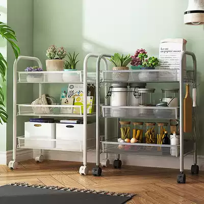 Kitchen rack removable floor-to-ceiling trolley bedroom bathroom pulley storage layer shelf crested slot shelf