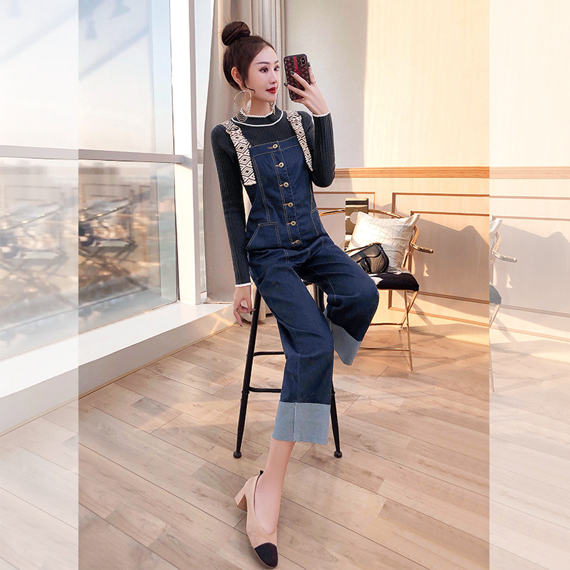 Broadlegged Pants Suit Foreign Air Fashion Autumn winter 2023 New women's clothing Knitted Sweatshirt Jeans Back with pants Two sets-Taobao