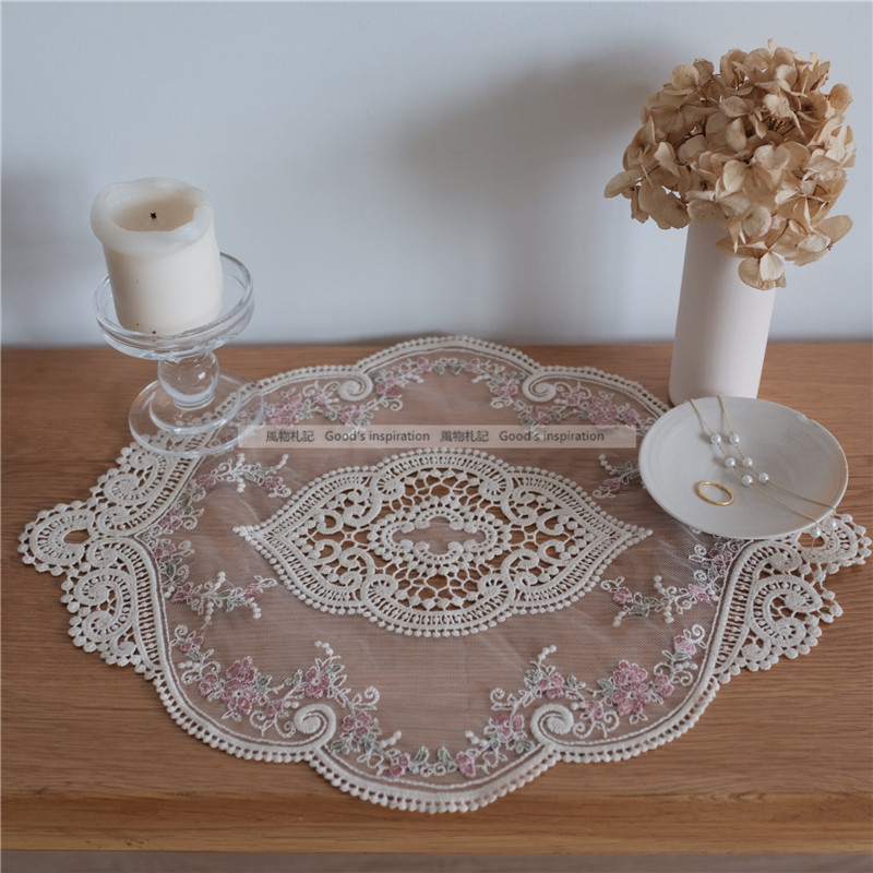 Ins retro French girl lace embroidered flower table mat tablecloth placemat posing props background cloth chic homestay