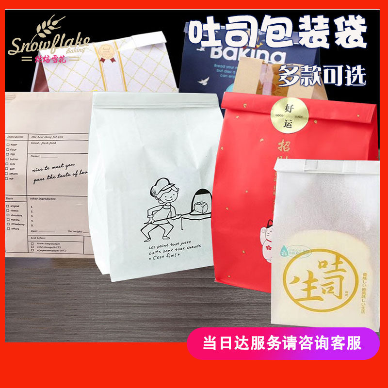 Toast bag white hand-painted film toast with wire curled edges baking packaging self-styled pound cake Black Literal Bag bag