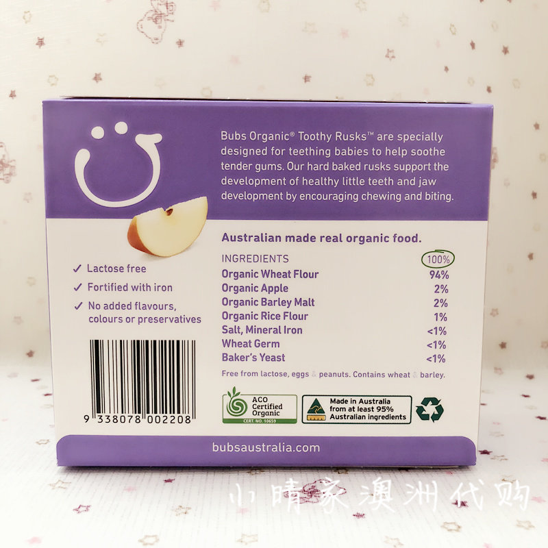 Australian bubs baby organic molar stick apple barley molar biscuits baby non-staple food 12 in stock