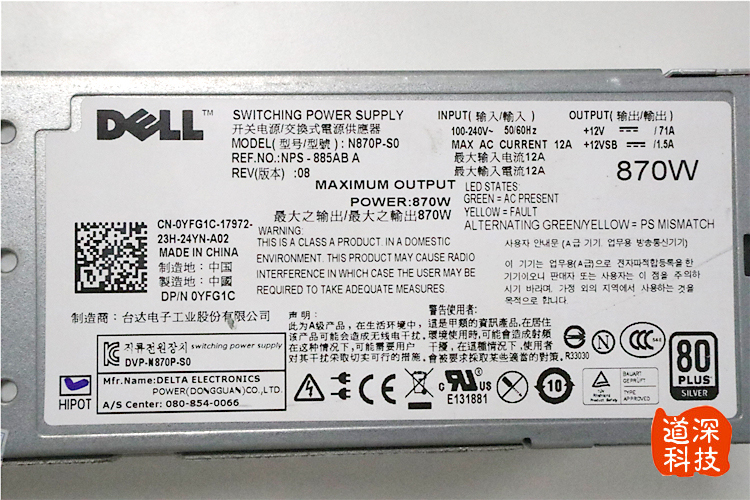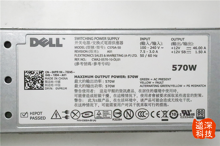 DELL R710 server 570W 870W power supply C570A-S0 0VPR1M N870P-S0 0YFG1C