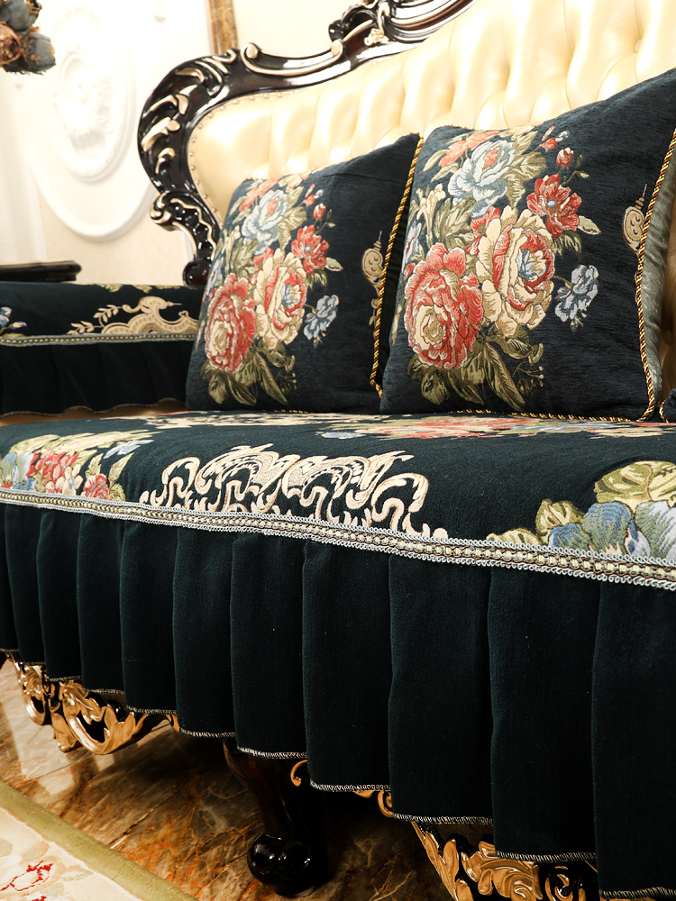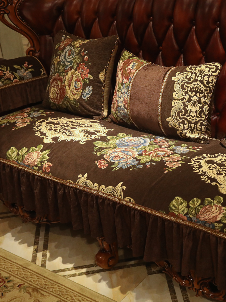 European-style leather sofa cushion cover high-end luxury winter style thick chenille American four-season universal non-slip 123 cushion