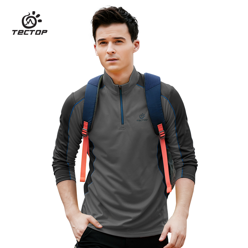 Exploring the official flagship store T-shirt for men's summer loose long sleeves bottom outdoor vertical collar running speed dry blouses women-Taobao