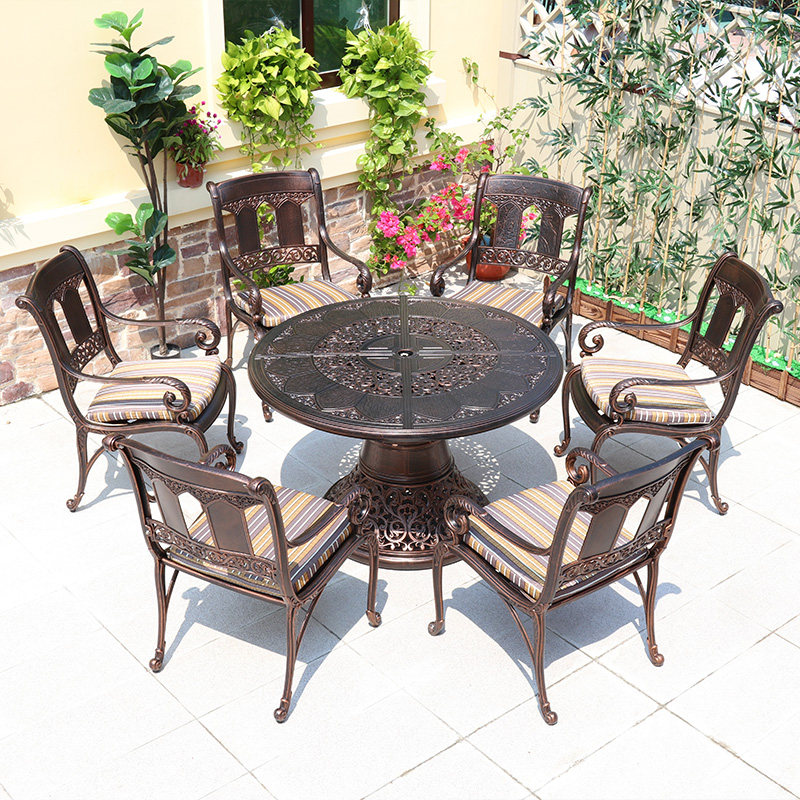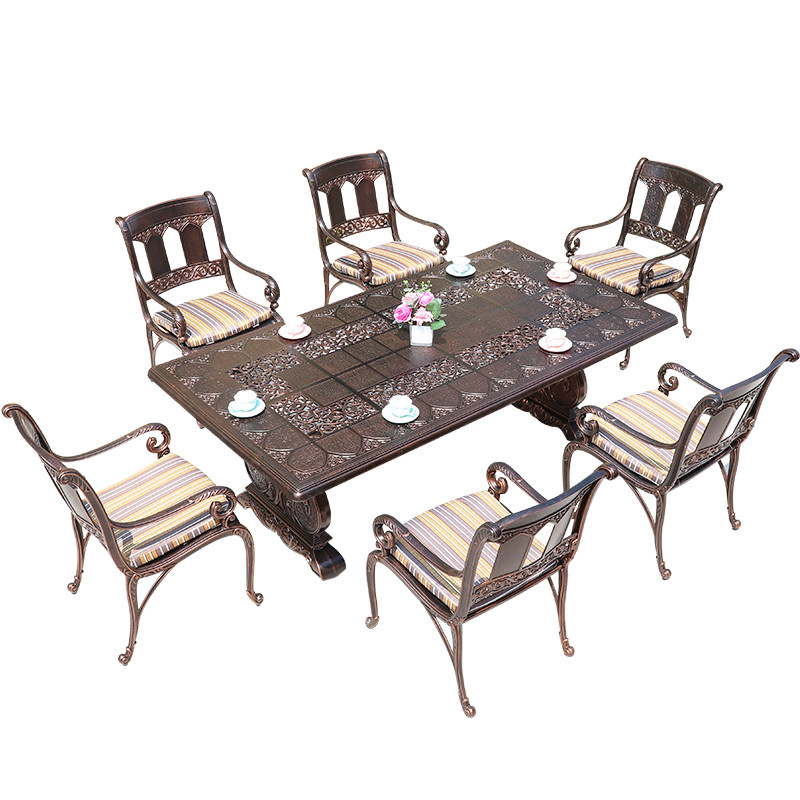 Outdoor cast aluminum table and chair combination outdoor courtyard dining table furniture wrought iron leisure garden balcony table and chair three-five-piece set