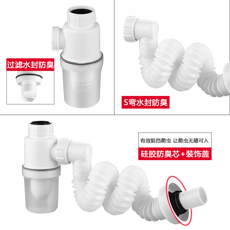 P-type deodorant tube 304 flap non-porous drain Binglong basin drain set