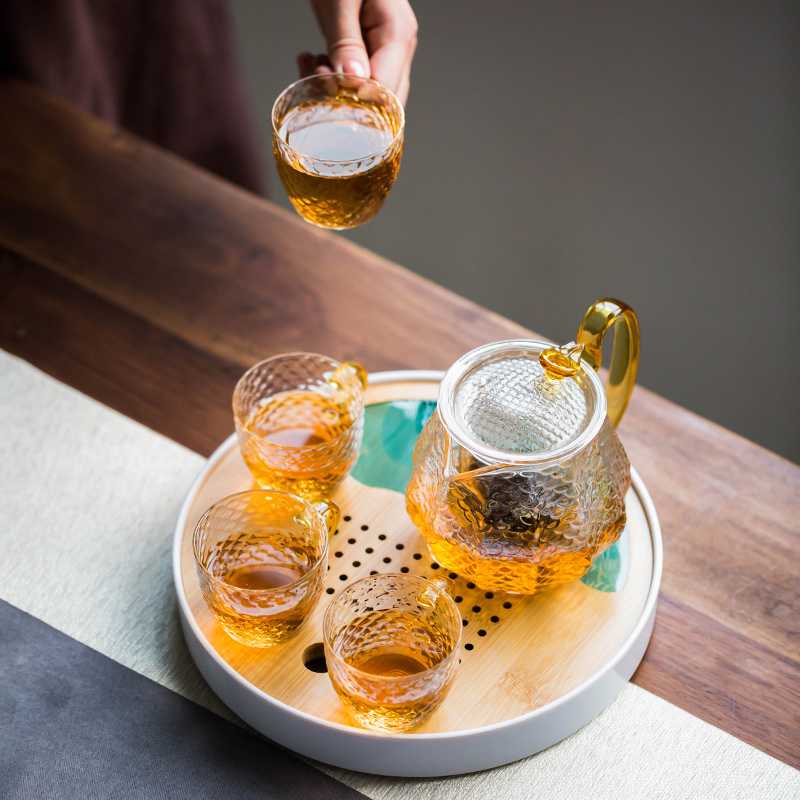 Gold "Dragon scale pot"glass pot four cups Gold "Dragon scale pot"glass pot four cups melamine wave white tea plate Gold "Dragon scale pot"a pot six cups Gold "Dragon scale pot"10-piece set