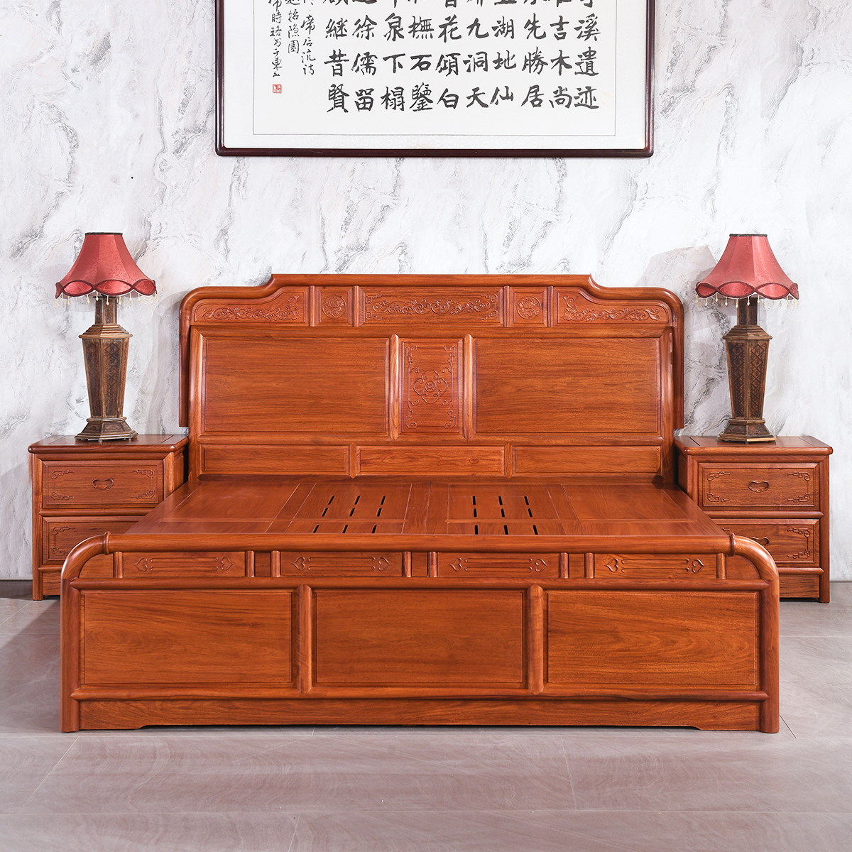Su Suming style mahogany furniture high box storage mahogany bed Burmese rosewood double bed 18m Chinese style bedroom