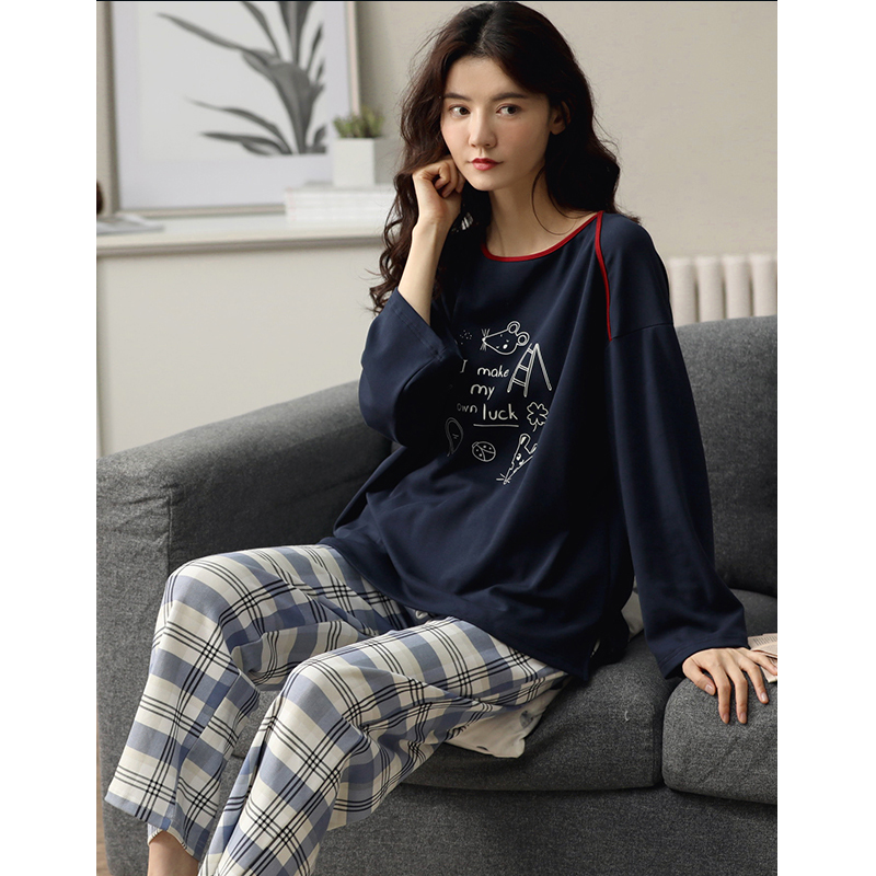 (Loss clearance)pajamas women's spring and Autumn cotton long-sleeved trousers can be worn outside home clothes two-piece suit