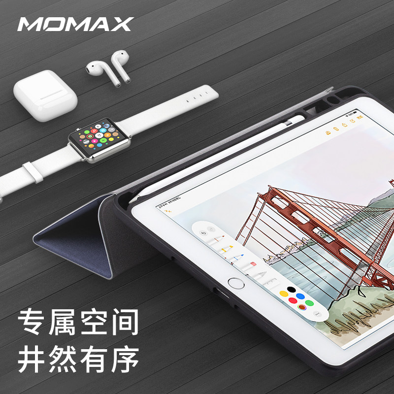 momax is suitable for Apple's 2019 new ipad 10 2-inch tablet protective case with pen slot three-fold all-inclusive edge anti-drop soft leather case simple ultra-thin silicone protective case
