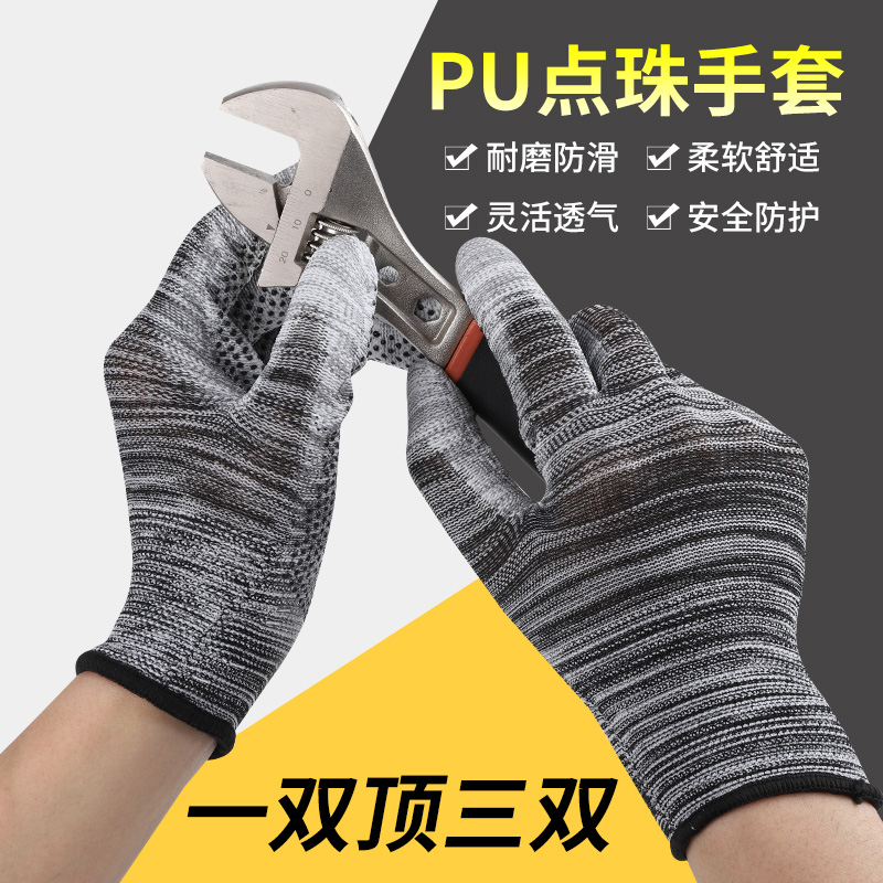 PU point beads coated palm gloves (blue 12 double) PU point bead coated palm gloves (black 12 double) PU point bead coated palm gloves (green 12 double) PU point bead coated palm coated palm (red 12 double)