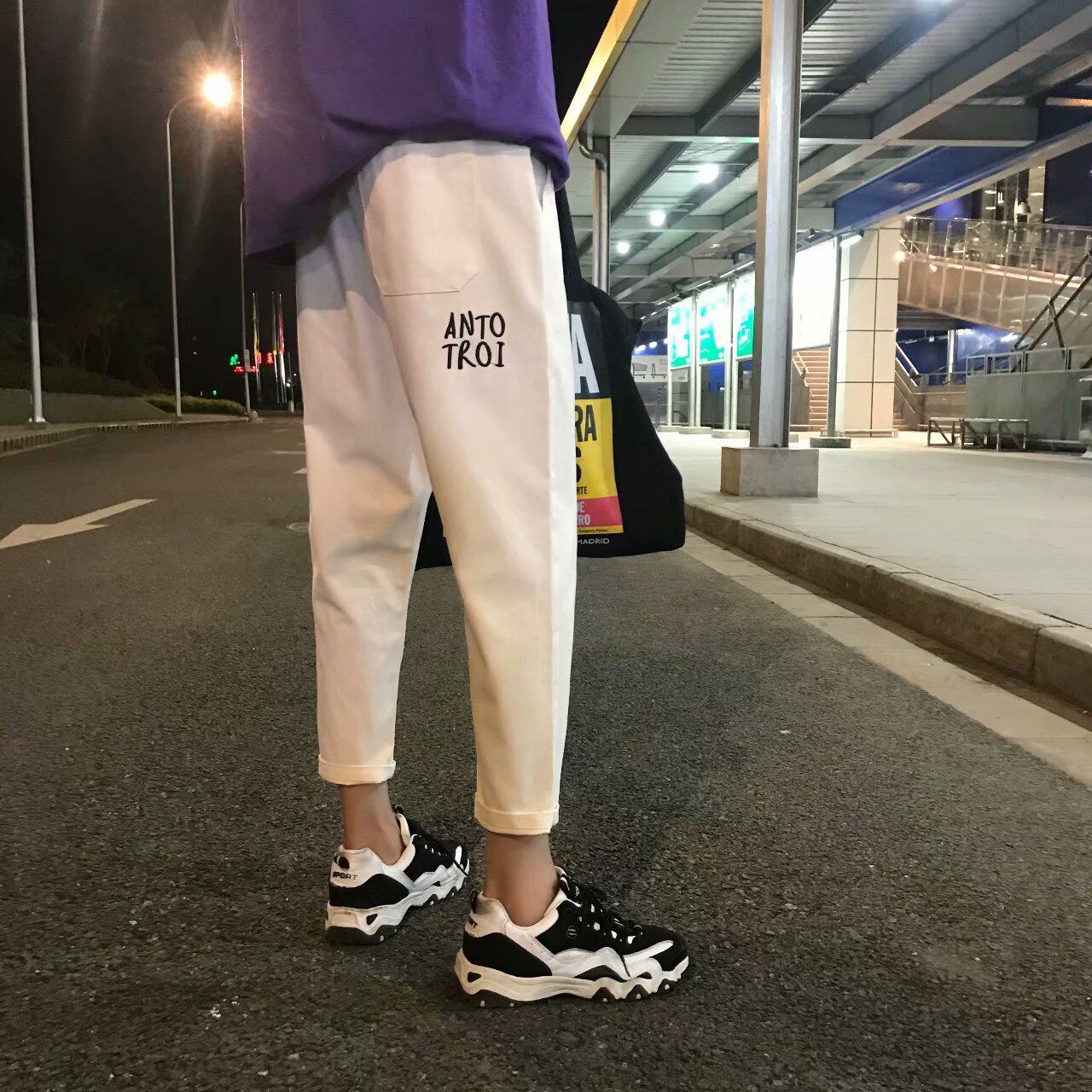 Spring Summer Thin pins Ins pants Men's Korean version Trend 90% Pants Loose Straight Barrel Broadlegged Kharen Pants Casual Long Pants
