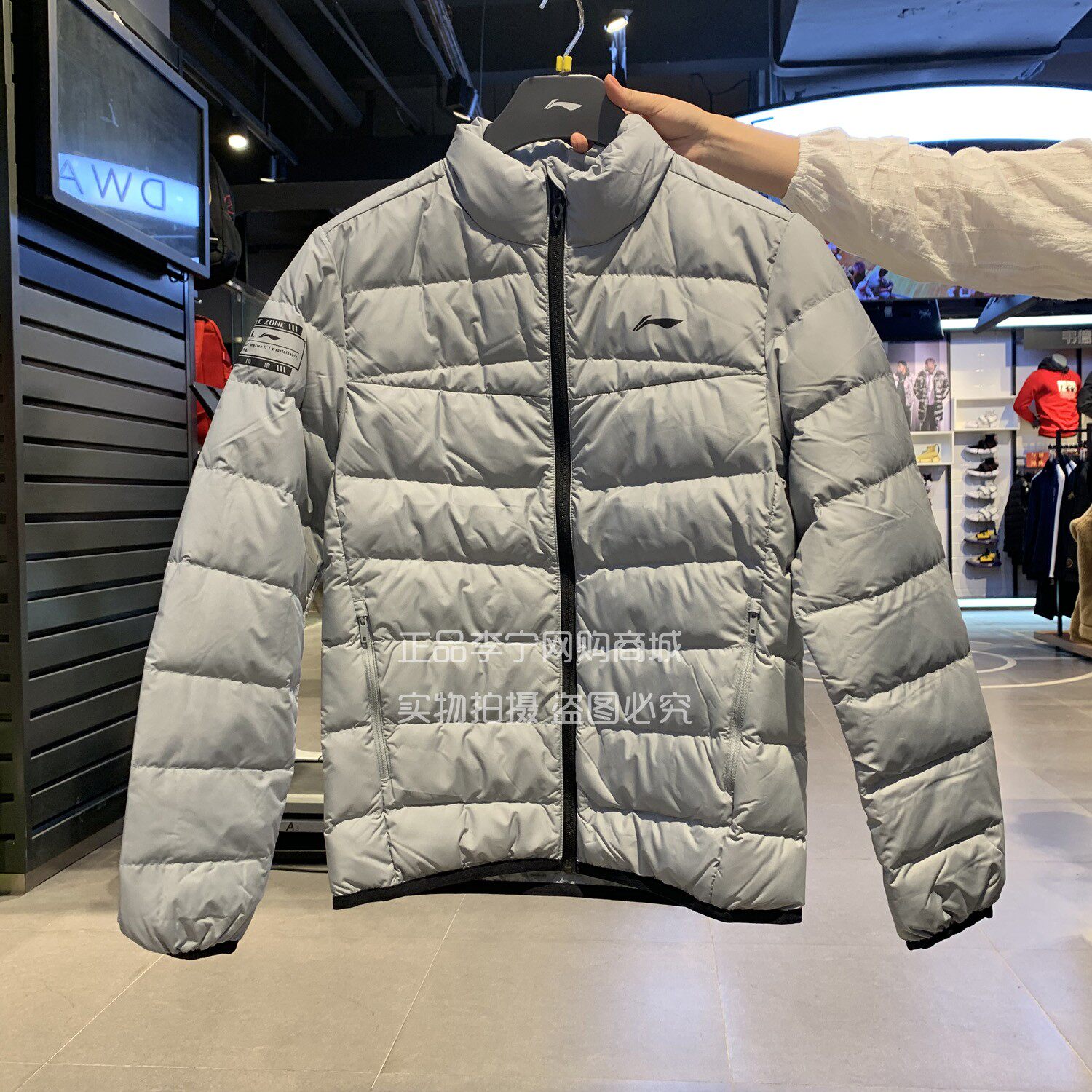 Li Ning Short Version Down Clothes Men's 2019 Winter Style Training Series White Duck Down Stand-up Collar Workout Wear AYMP085