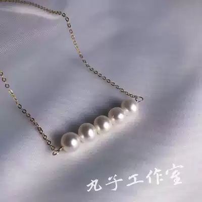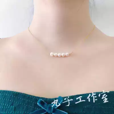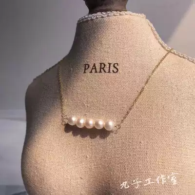Balance beam American 14K gold freshwater pearl necklace Simple temperament elegant clavicle chain Adjustable necklace