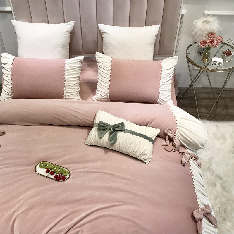 Han Style Thickening of Garnapped Butterfly junction Four pieces Coral Suede Winter Baby Suede Princess Wind Flannel Suede Bedding